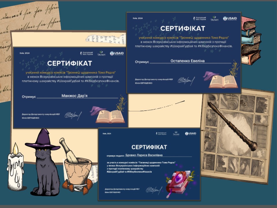 Новий рік починаємо з приємних новин! Здобувачі освіти Відокремленого структурного підрозділу «Хорольський агропромисловий фаховий коледж Полтавського державного аграрного університету» та їх наставники, учасники конкурсу відеосюжетів «Юні кореспонденти» та конкурсу коміксів «Таємниці щоденника Тома Редла» в межах Всеукраїнських інформаційних кампаній з протидії платіжному шахрайству отримали сертифікати за участь у конкурсах! Ці конкурси стали захоплюючими проєктами для студентів, що поєднують важливі знання з кібербезпеки та творчість молоді.