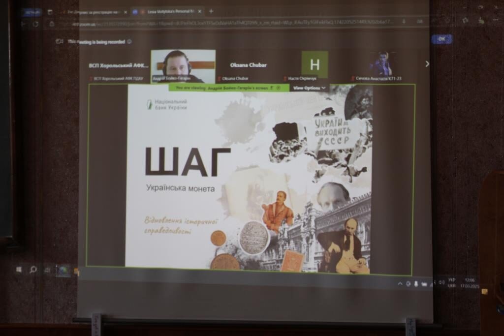 17 березня під час вебінару «Шаг – відновлення історичної справедливості» студенти груп Ф41, Ф32 ОПП «Організація і технологія ведення фермерського господарства» разом з викладачем Науменко Л.О. дізналися про появу і використання монетно-лічильного найменування «шаг», про те, що завадило ввести шаг у грошовий обіг під час проведення грошової реформи 1996 року, його значення для національної фінансової історії.