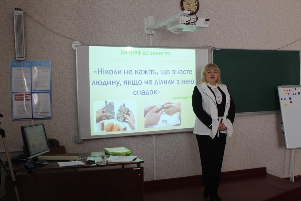 Викладач звернула увагу студентів не тільки на теоретичну основу спадкового законодавства, а й на практичну складову викладеного матеріалу. Для досягнення поставленої мети була використана презентація.